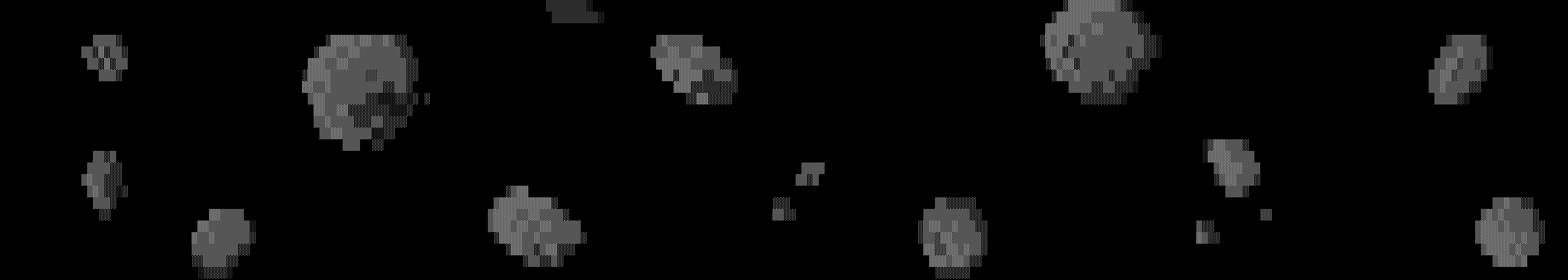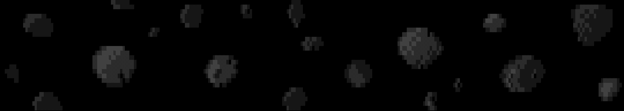 When it came time to draw the background asteroids, it took a lot of work to create something satisfactory. The constraints of using only shaded blocks and keeping mostly to shades of high-black (dark gray) made it challenging to come up with believable shapes. Here are the two final layers: